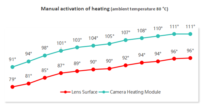 - Activation Threshold: When lens surface temperature > 0°C, manual heating activation required